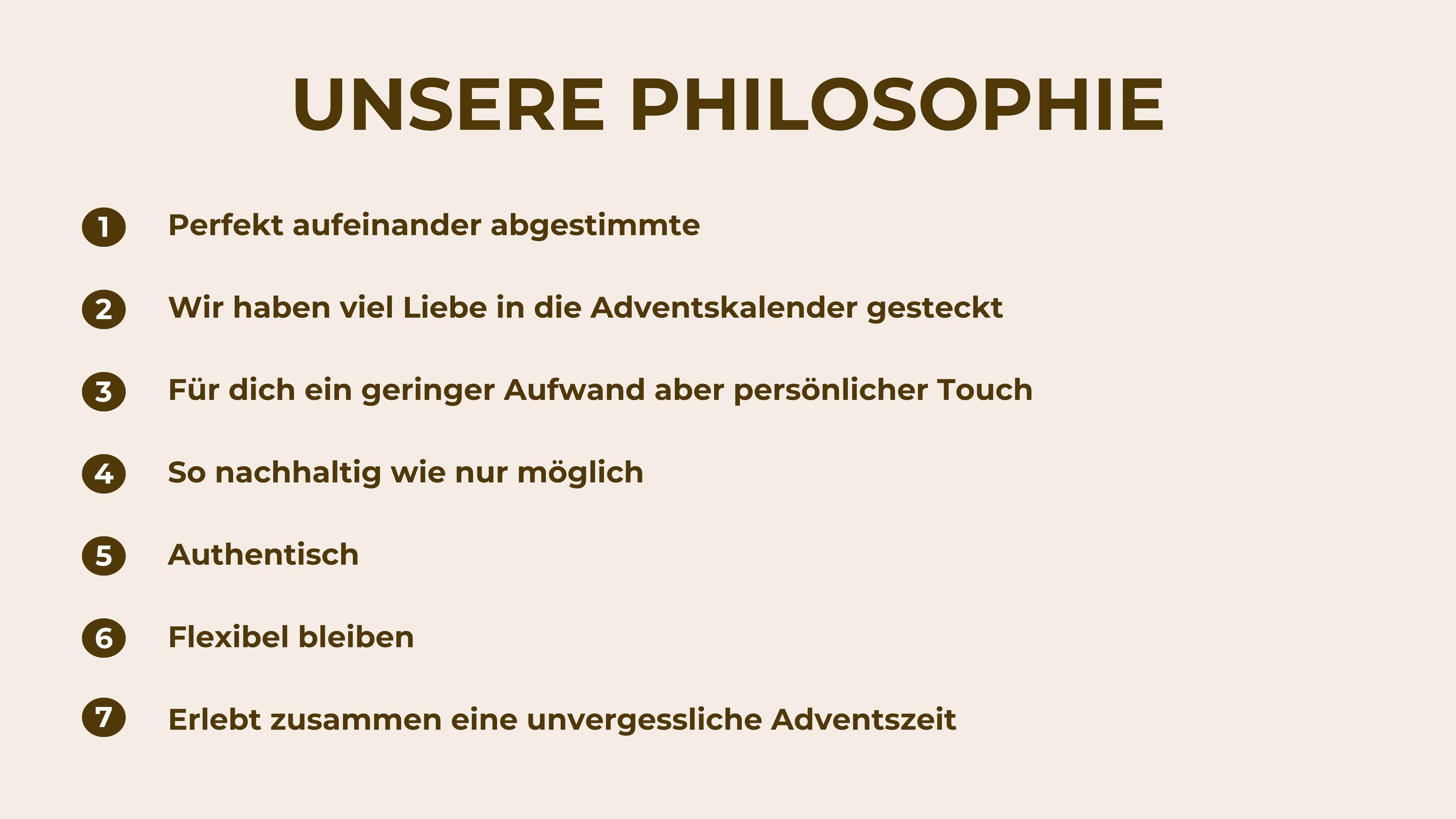 Wir sind Leo, Sophia, Mara und Nick – zwei Paare, die seit vielen Jahren eng befreundet sind. Unsere Freundschaft ist geprägt von gemeinsamen Erlebnissen und liebevollen Traditionen, zu denen auch das Basteln von Adventskalendern für unsere Partner gehört. Jedes Jahr haben wir viel Zeit und Mühe investiert, um einzigartige Adventskalender zu gestalten, gefüllt mit handgeschriebenen Briefchen, liebevollen Kärtchen, kleinen Geschenken und vielem mehr. Diese Kalender haben unseren Partnern viel Freude bereitet und die Vorweihnachtszeit zu etwas ganz Besonderem gemacht. Doch so schön diese Tradition auch war, sie brachte immer auch einen großen Aufwand mit sich. Die Herstellung der Kalender war nicht nur zeitintensiv, sondern auch kostspielig. Zudem stellte sich die Frage: Warum soll nur eine Person die Freude und Überraschungen eines Adventskalenders genießen? Es fehlte das gemeinsame Erlebnis, das diese besondere Zeit im Jahr noch intensiver und verbindender machen könnte. Aus diesem Grund haben wir uns entschlossen, eine Lösung zu finden, die all diese Probleme löst. Wir wollten einen Adventskalender schaffen, der nicht nur stressfrei und erschwinglich ist, sondern auch beiden Partnern gleichermaßen Freude bereitet und sie näher zusammenbringt.